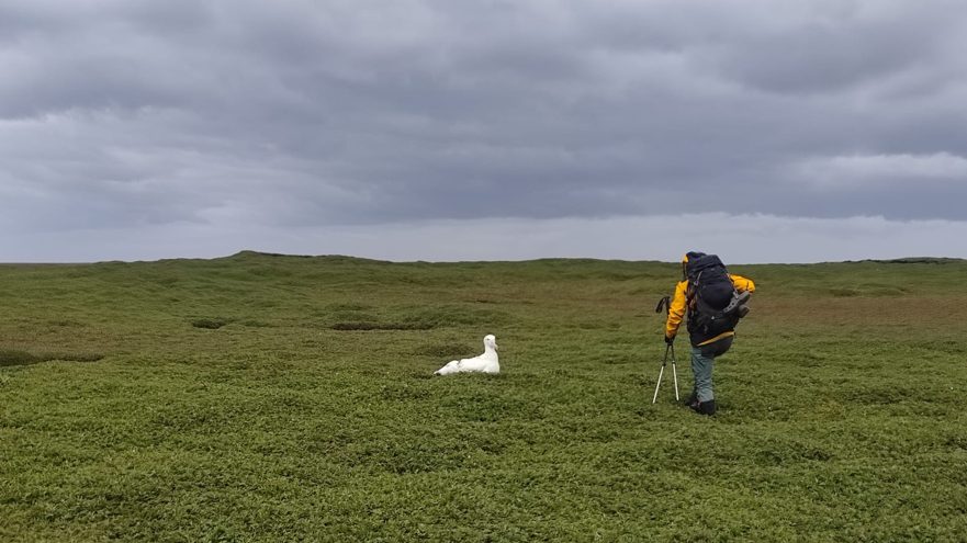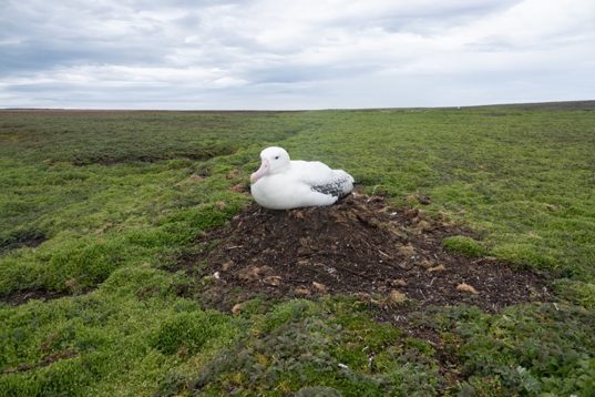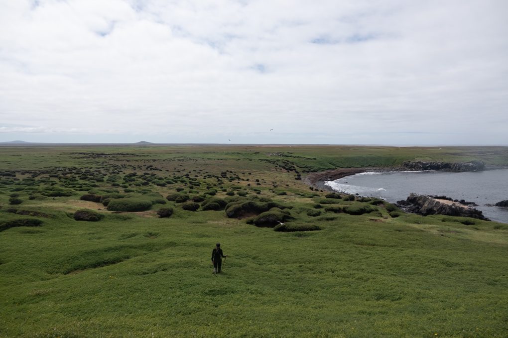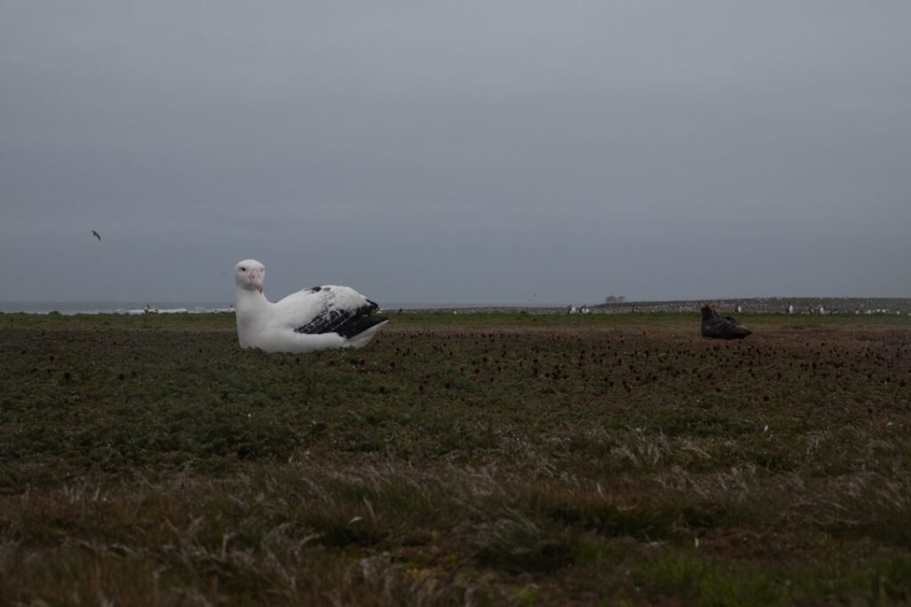 Sur chaque transit (trajet entre les cabanes) nous passons par la côte (le chemin le plus beau et le plus long) et à 4 nous allons recenser tous les nids d’albatros de la péninsule ! Ce n’est pas une mince affaire car ils peuvent nicher jusque 1,5 km dans les terres ou plus. Pour cela nous devons nous déployer à +/- 500 m les uns des autres pour être sûrs de couvrir toute la zone. Cela nécessite une bonne coordination pour ne pas en louper, ne pas les compter deux fois, et accessoirement ne pas se perdre ! Ou se retrouver une fois que l’on s’est perdus (cela a pu m’arriver une fois …)