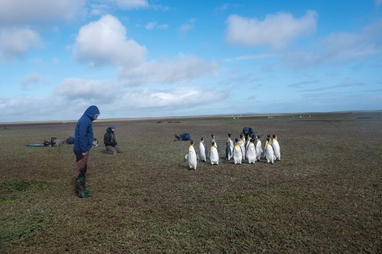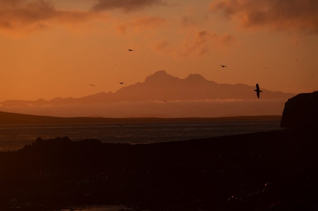 Pendant ce tour nous passons également par la colonie de manchots royaux de Ratmanoff et de Digby, où je suis sensée faire des photos aériennes de la colonie par cerf-volant ! Petit problème : les conditions nécessaires ne sont pratiquement jamais présentes ici, où il vente généralement trop, par rafale et pas dans la bonne direction. Autant dire qu’on a baladé le cerf-volant, mais qu’il n’a pas volé.