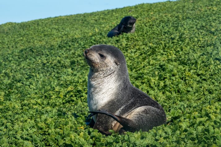 En même temps, la personne sur la côte guette les otaries. Nous devons compter les pups (les petits). Lorsqu’il commence à y avoir des harems et des petites otaries partout, nous nous mettons à deux pour les compter, pour avoir des chiffres plus fiables et aussi pour notre sécurité ! Eh oui, on ne dirait pas comme ça, mais ces petites bestioles en plus de puer, sont de vraies teignes et nous chargent en grognant dès qu’on s’approche un peu trop près. En fait elles ressemblent à des petits chiens en colère. Bon vous l’aurez compris, je ne les porte pas vraiment dans mon cœur, ou alors de loin !