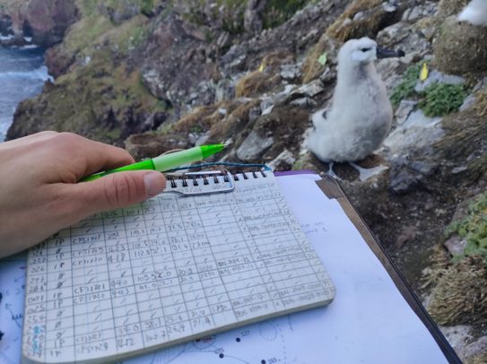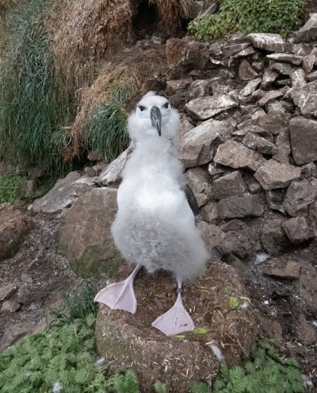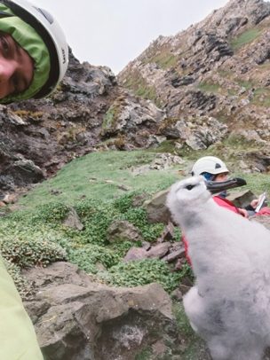 En attendant, fin mars j’ai fait une super manip dans un de mes endroits préférés de Kerguelen. Le baguage des poussins d’Albatros à Sourcil Noir.