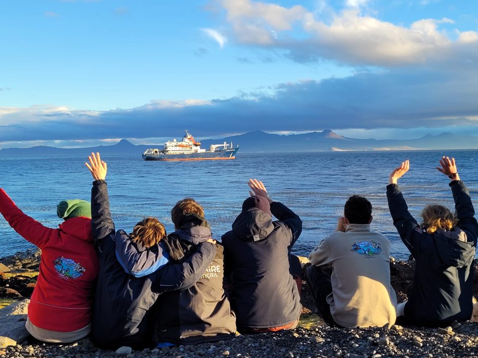 Les jours passent vite et le temps des adieux est arrivé, c’est dur de voir nos amis monter dans l’hélicoptère. C’est définitivement la fin de la campagne d’été, quelques heures plus tard, à l’appareillage du bateau, nous allons avec le camion pompier et sa sirène hurlante, au port pétrolier voir le bateau sonner la corne de brume. Nous échangeons les derniers mots avec les copains à la radio, jusqu’à ce qu’ils soient hors de portée.