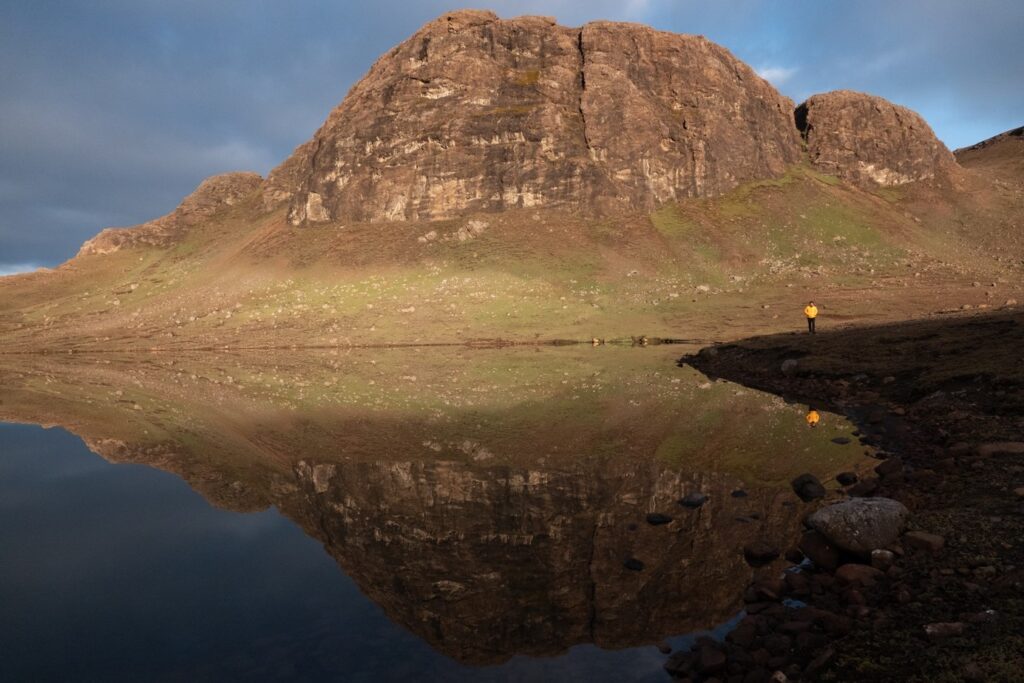 Nous resterons deux jours dans notre petite boule rouge, le temps de faire l’inventaire et pour une fois, de prendre le temps d’explorer les alentours. Le premier matin nous nous réveillons avec une absence totale de vent, le lac est transformé en miroir, cela durera juste le temps de capturer quelques photos. Nous profitons de cette journée libre pour discuter au soleil, nous balader et prendre des photos de cet endroit qui est pour moi, un des plus beau paysage de Kerguelen.