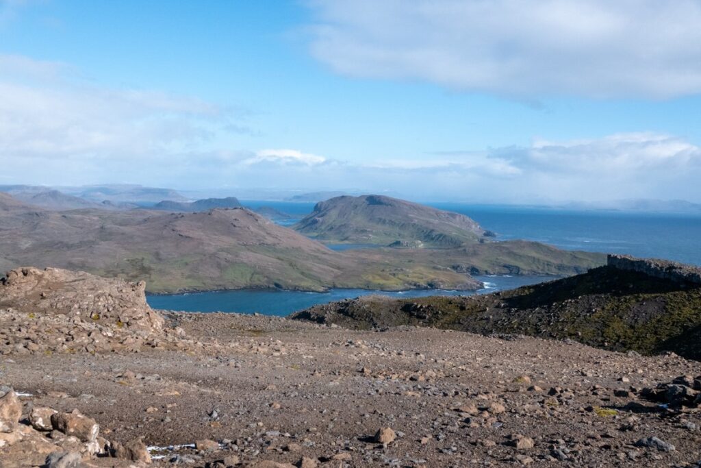 D’ici nous pouvons voir tout le Nord de l’Archipel que nous ne voyons jamais d’habitude, c’est époustouflant. Nous avons vraiment une chance inouïe avec la météo.